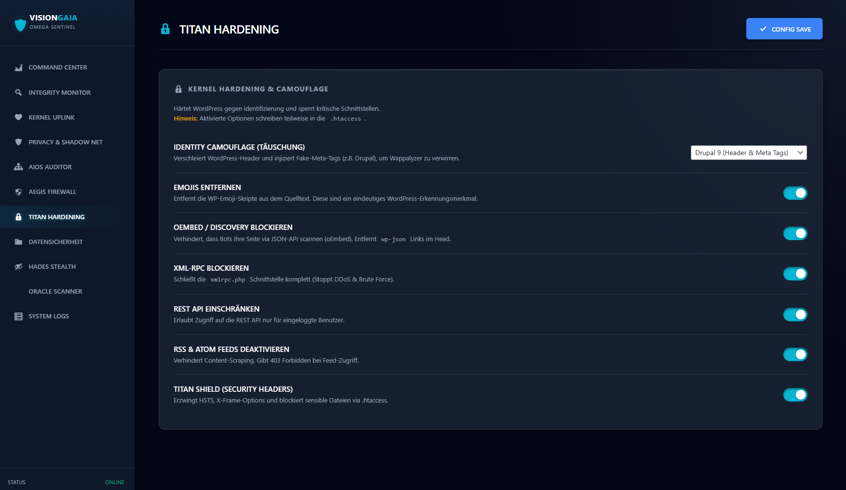Die meisten Webseiten werden gehackt, weil Plugins unsicher sind oder die DSGVO ignoriert wird. Sentinel verbindet technische Sicherheit (Hades/Cerberus) mit rechtlicher Immunität (Vision Legal Pro).
