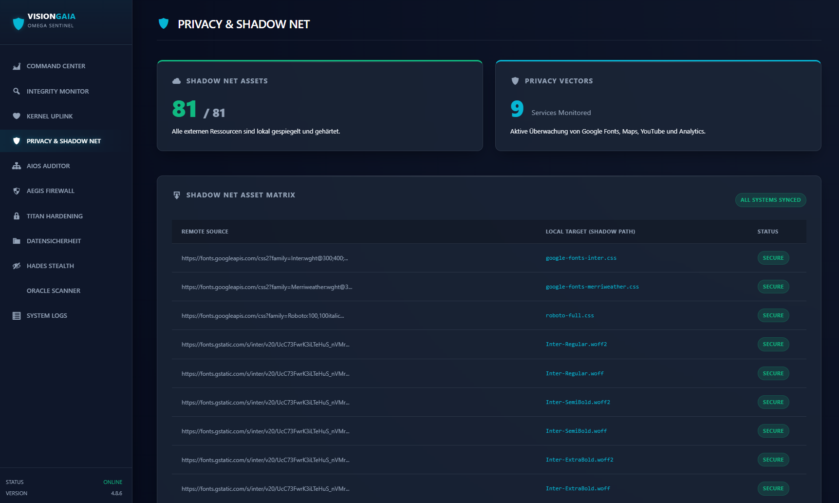 Vision Legal Pro (VLP) Integrierte DSGVO-Abwehr. Blockiert Tracker serverseitig, bevor Daten fließen. Schützt vor Abmahnungen.